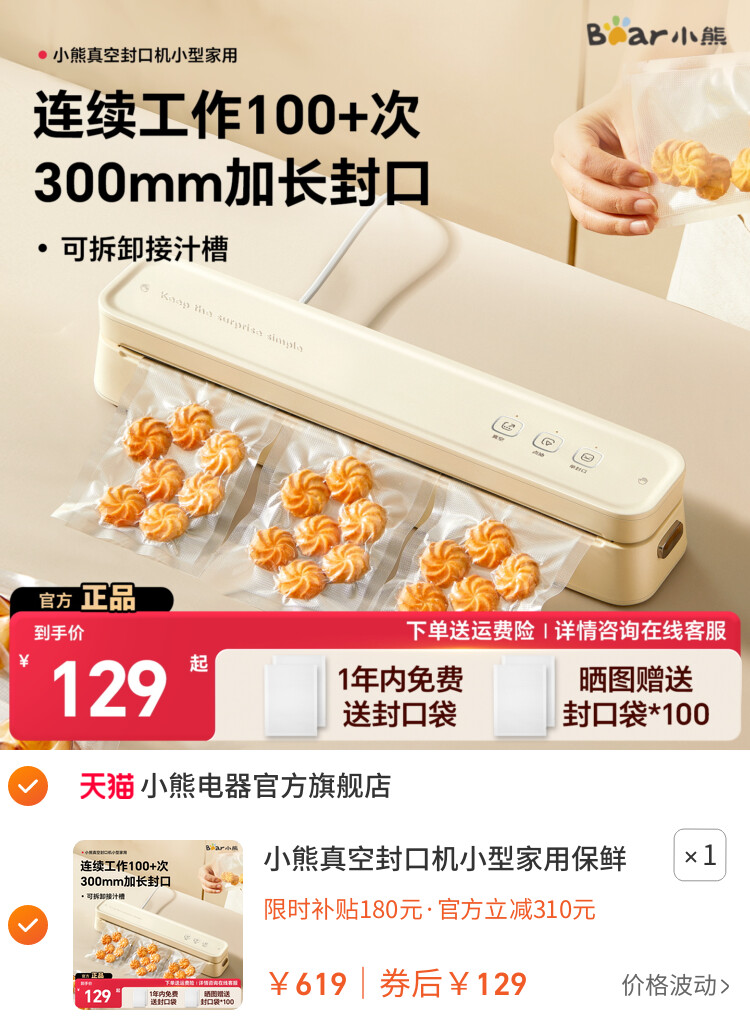 小熊抽真空封口机 小型家用保鲜机 食品包装机 自动密封机 迷你塑封机