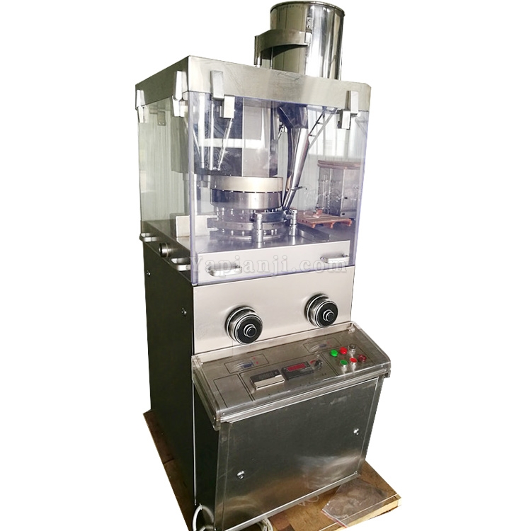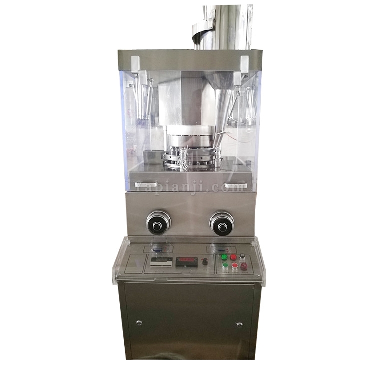 本机具有压力大,压片范围大,能压普通和异形,环行等多种形状片剂的特点,特别适合实验及多品种、小批量生产。机电一体化,所有控制器及调节装置集中机体一侧,易于操作。配有压力过载保护装置,避免机器损坏。采用油侵式润滑的传动机构密闭在机体下方,延长了使用寿命避免了交叉污染。