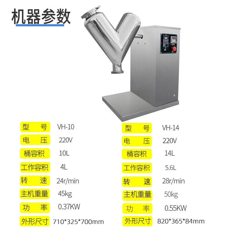1、小型单臂V型混合机,设计轻巧,混合桶可拆 2、转速可调,可定时, 3、快拆阀门,不锈钢材质,清理方便