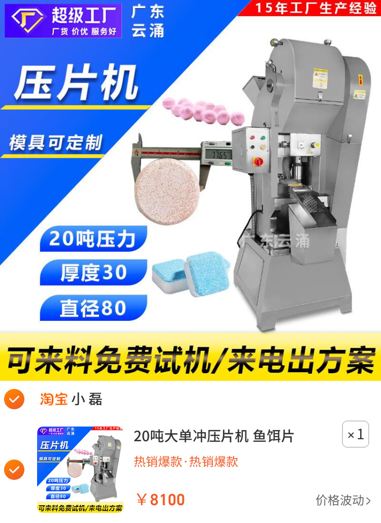 20吨大单冲压片机 鱼饵片剂球形双色清洁块压片机 大片压片机