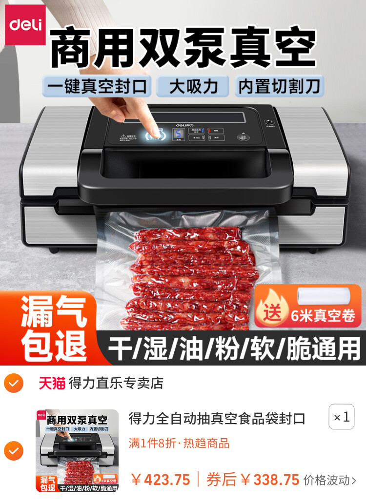 得力全自动抽真空食品袋封口机保鲜压缩商用小型塑封密封打包装机