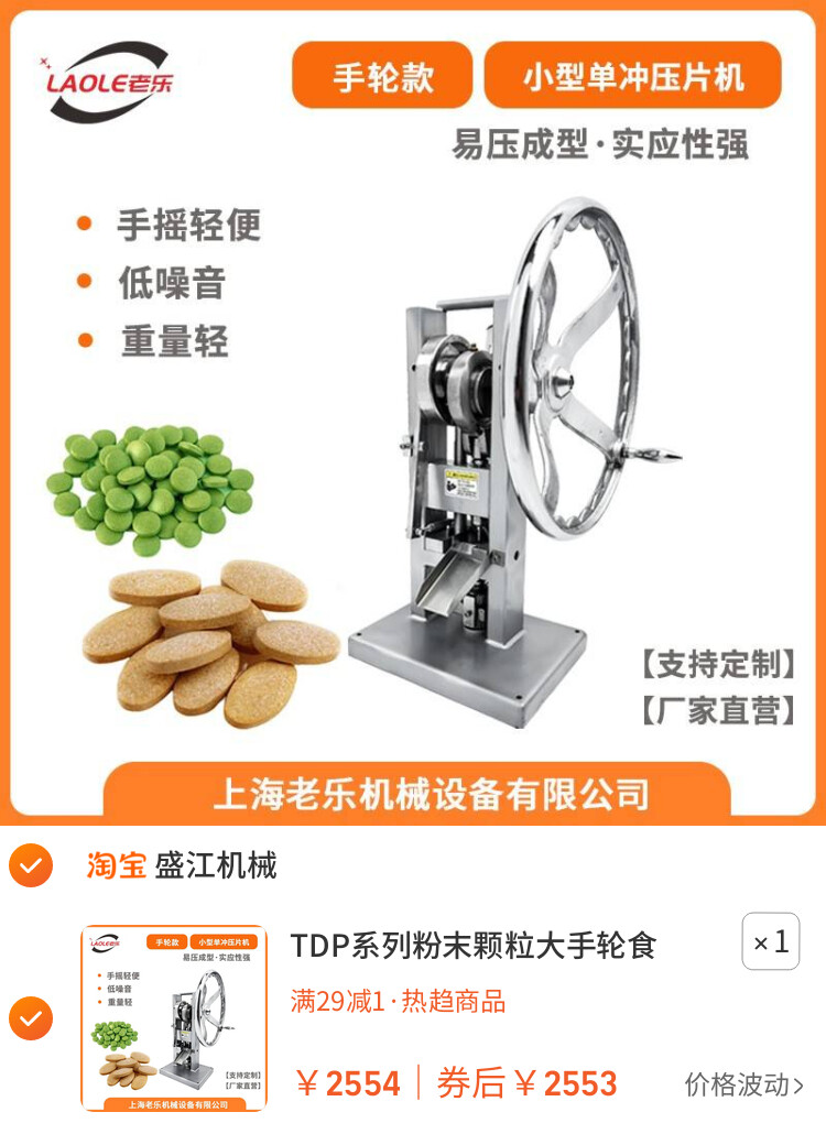 TDP系列粉末颗粒大手轮食品单冲压片机12MM维生素片糖果制片机