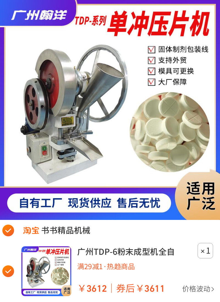 广州TDP-6粉末成型机全自动药片生产机器单冲压片机厂家