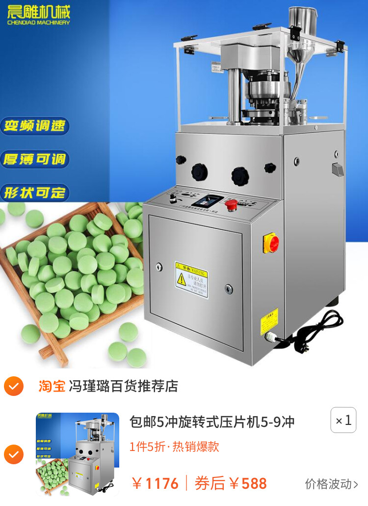 包邮5冲旋转式压片机5-9冲圆形异形片消毒片生产设备心形压片机