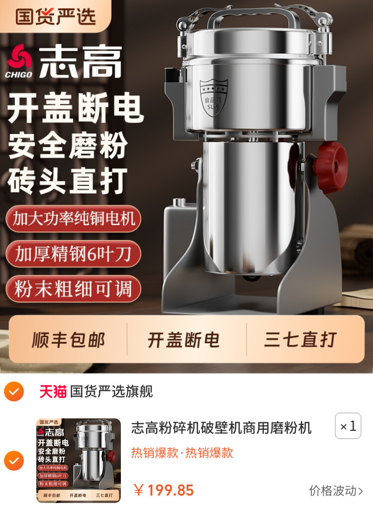 志高粉碎机破壁机商用磨粉机打粉机研磨破碎机小型家用超细中药材