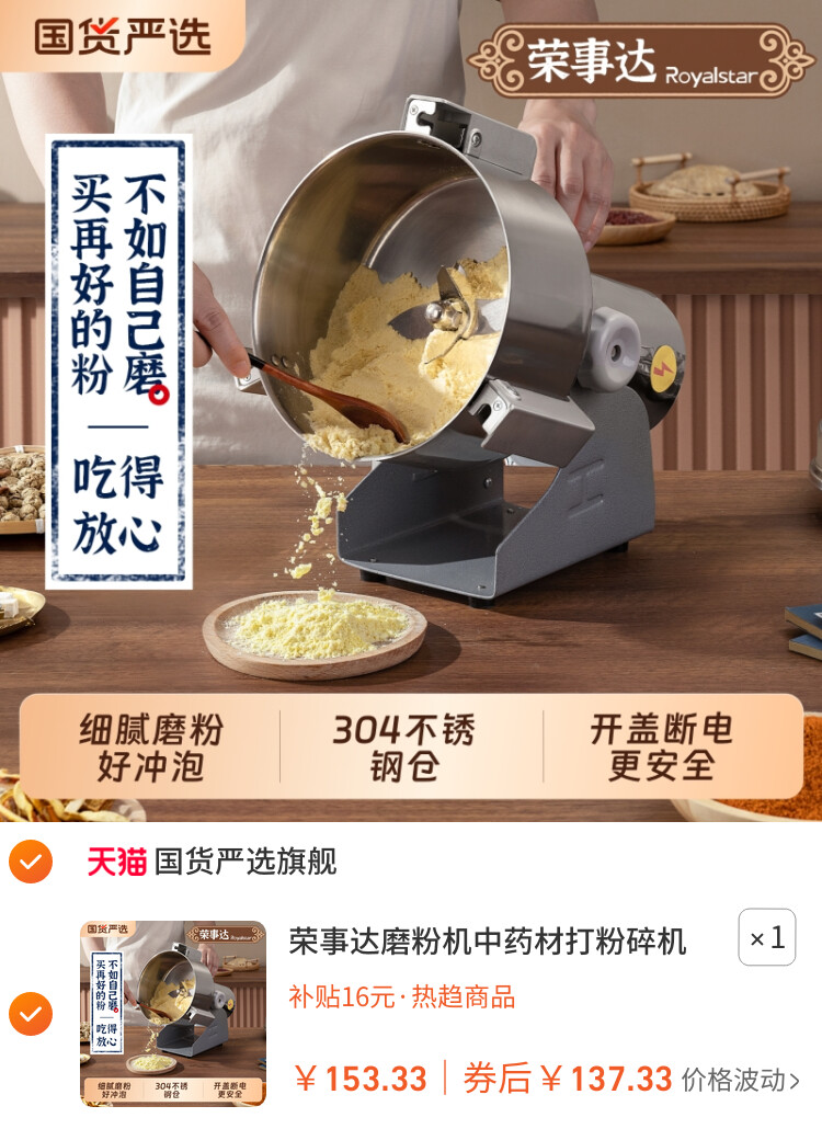 荣事达磨粉机中药材打粉碎机超细研磨家用小型干磨机破碎打碎商用