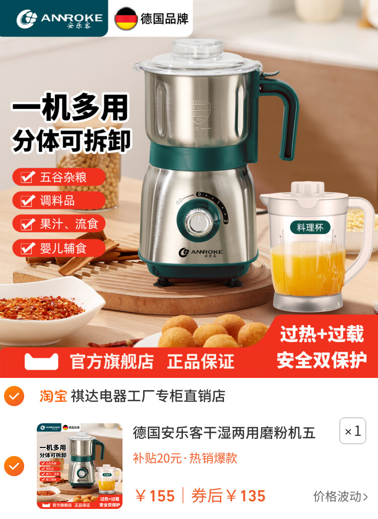德国安乐客干湿两用磨粉机五谷杂粮粉碎机家用小型打粉机超细研磨