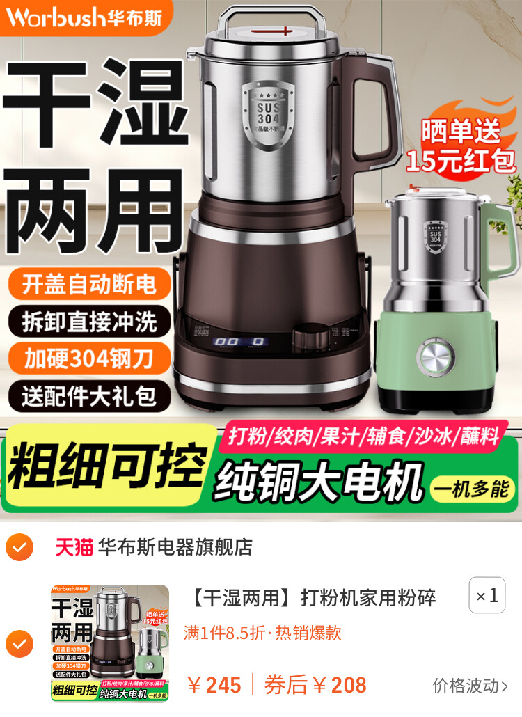 【干湿两用】打粉机家用粉碎机中药材磨粉机五谷杂粮研磨机破壁机