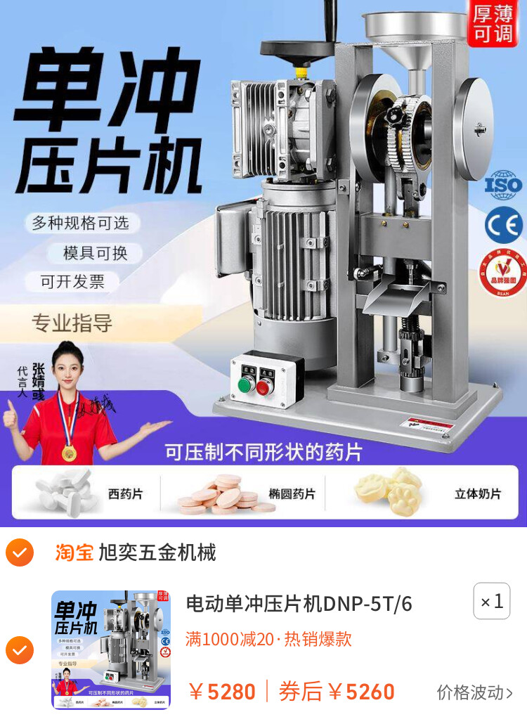 电动单冲压片机DNP-5T/6T/8T中药粉末打片机药片制片机糖果椰奶片