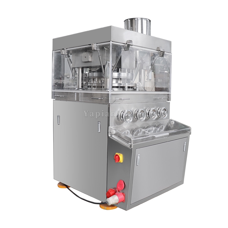 压片机在结构设计上注重生产安全和环境保护,主要体现在以下方面: