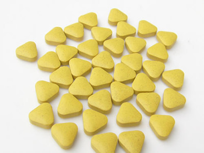 ⑤甘露醇 适用于咀嚼片的稀释剂。所制片剂表面光滑美观,味佳无沙砾感,甜度相当于糖粉的70%左右,因溶解时吸热,故口腔中溶化有清凉感,但流动性差且价格较贵,常与糖粉配合应用。山梨醇是甘露醇的异构体,吸湿性较强
