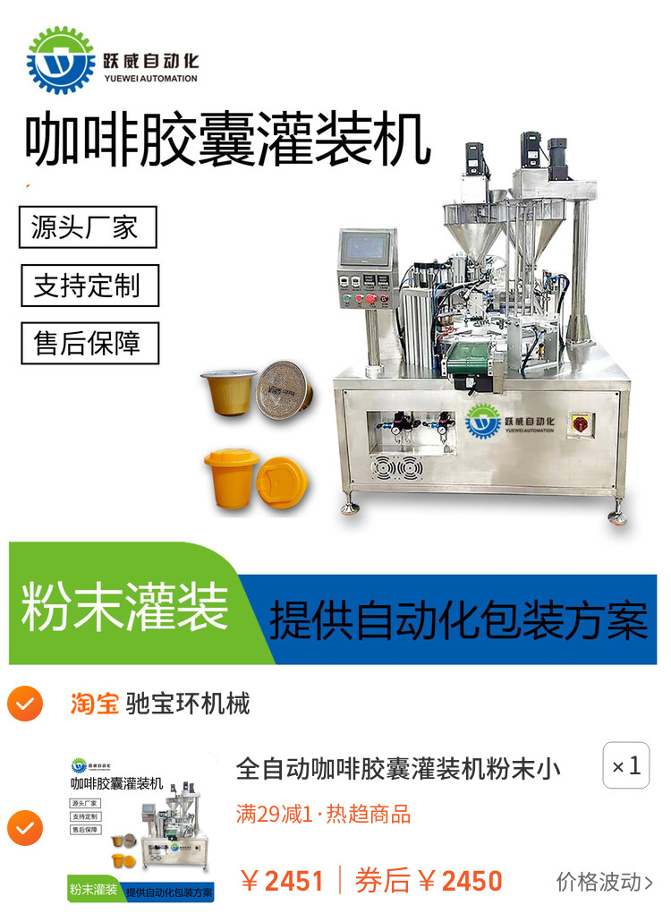 咖啡粉灌装机 全自动高速杯装片膜卷膜粉末灌装机 咖啡胶囊灌装机